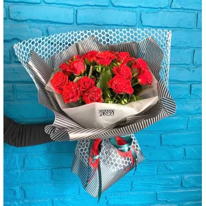 Букет из красных роз в оформлении (высота стебля 60 см)