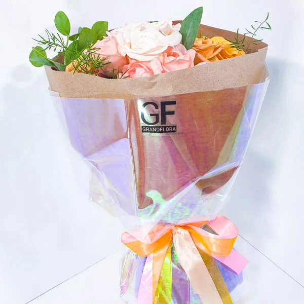 Красочный и в тоже время нежный и изящный букет, расскажет о многообразии Ваших чувств и их наполненности. Свежая цветовая палитра, изысканные формы, непередаваемая красота роз, в одном букете.